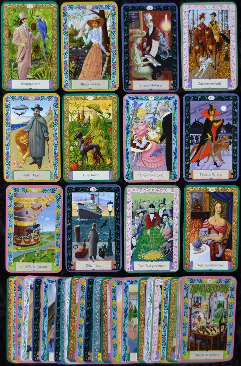 jautājumu vai situāciju. Atšķirībā no Tarot vai Lenorman kārtīm, kas ir strukturētas ar noteiktu